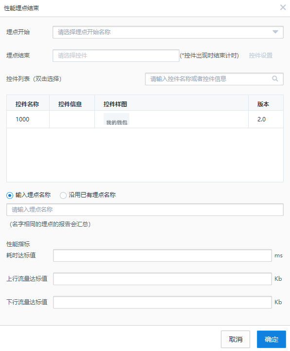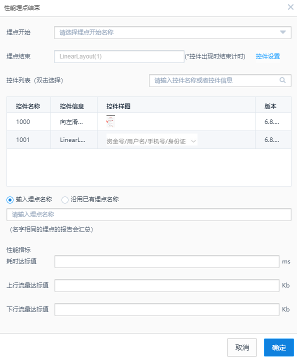 性能埋点结束:在所选控件插入性能埋点收集性能数据,即出现该控件时结束性能数据采集。