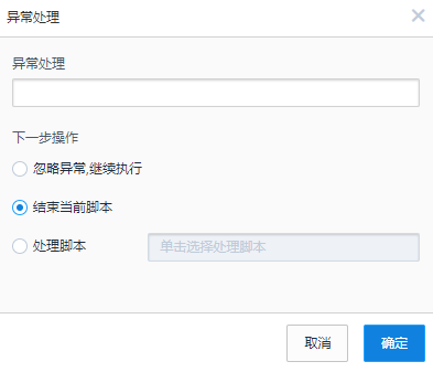 但是,当选择”忽略异常,继续执行”时,会继续执行对应的“t结束”后面的步骤,出错步骤显示报错,脚本结果显示执行通过,会计入任务通过结果中进行统计。
