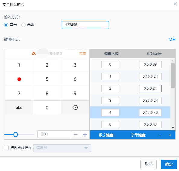 安全键盘输入:选择整个键盘控件,通过安全键盘进行输入,可以控制键盘显示比例来更改按键坐标。
