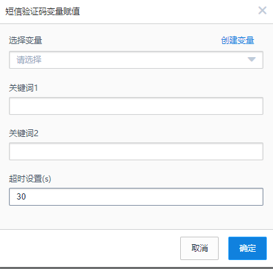 短信验证码变量赋值:从设备接收短信中取出关键词指定短信内容赋值给变量。