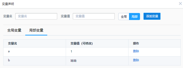 - 局部变量首字母小写其他无限制,可新增、编辑、删除。