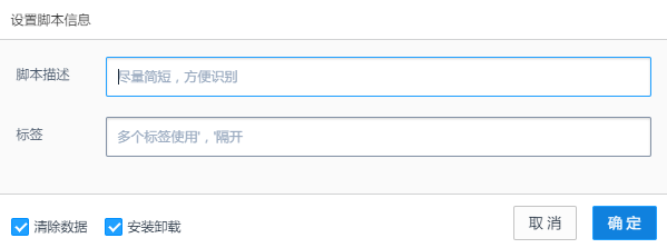 - 脚本描述和标签: 初始化时设置,或者点击工具栏的【重命名】设置脚本信息。