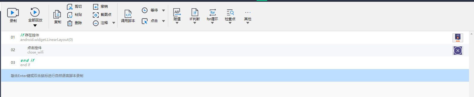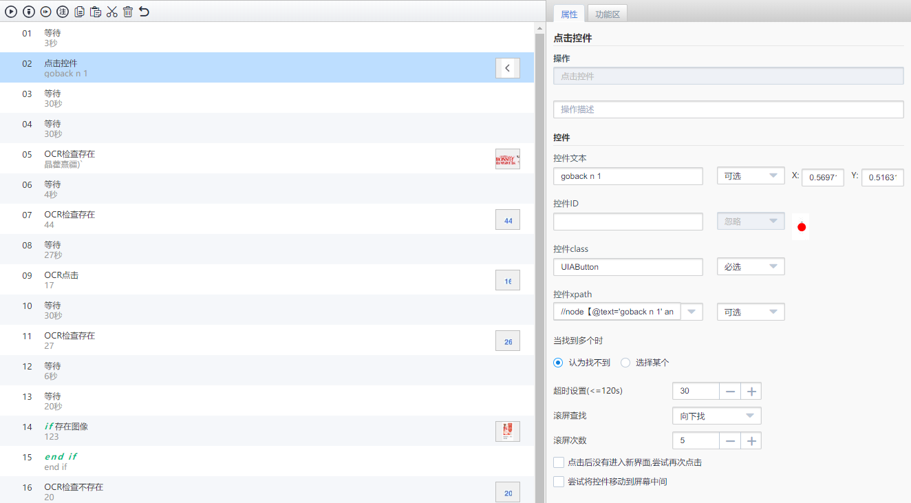 点击操作、if判断、for循环、:与控件/OCR操作类似,都是在脚本中插入逻辑控制操作。