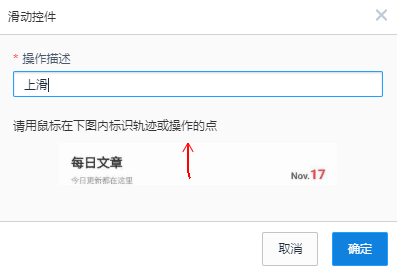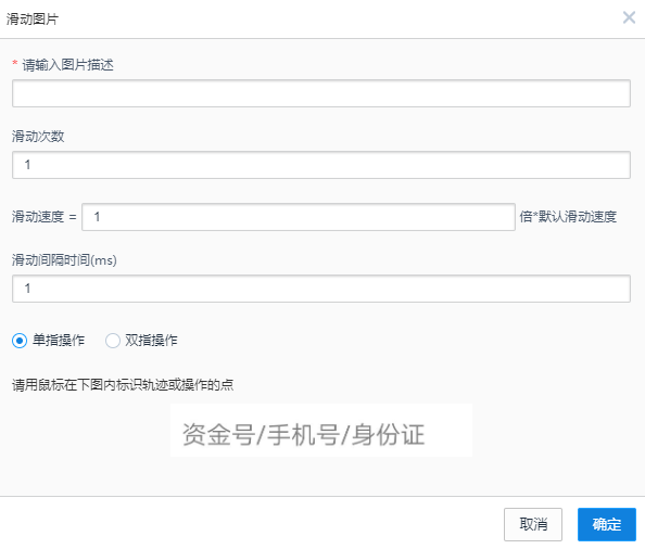 操作:对所选控件进行点击、双击、长按、上滑、下滑、左滑、右滑。滑动轨迹,标准滑屏操作操作。